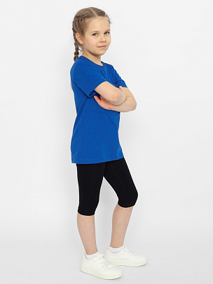 Футболка детская с коротким рукавом. Вырез горловины круглый, обработан притачной бейкой из рибаны с эластаном.