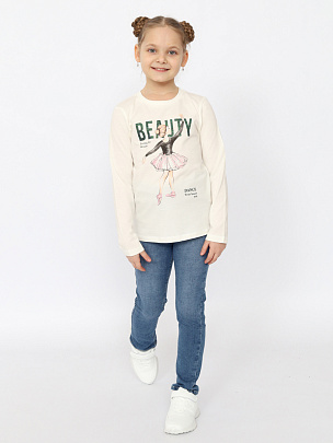 Лонгслив для девочки с длинными втачными рукавами. Перед джемпера декорирован принтом.