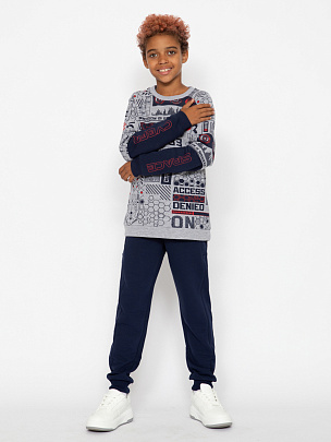 Джемпер с длинными рукавами, притачным поясом и манжетами. Рукав-реглан, отрезной, нижняя часть рукава декорирована принтом "Киберпространство".