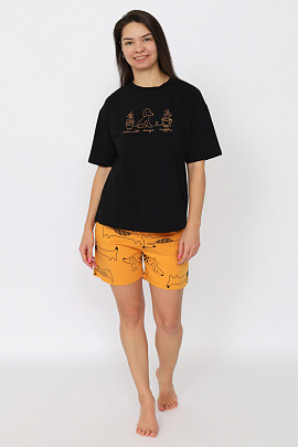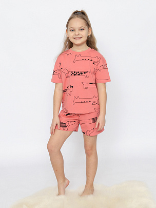 Пижама для девочки из футболки и шорт. Футболка оверсайз с круглой горловиной и короткими рукавами, свободного кроя с милым принтом. Шорты, без карманов из набивного хлопка, имеют удобную посадку, благодаря широкому эластичному поясу. Изделие изготовлено из мягкого и приятного на ощупь полотна. Пижама с шортами - это удобная и универсальная домашняя одежда, в которой можно спать, но и провести весь выходной.