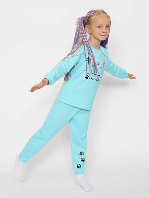 Пижама для девочки (футболка, брюки) светло-бирюзовая